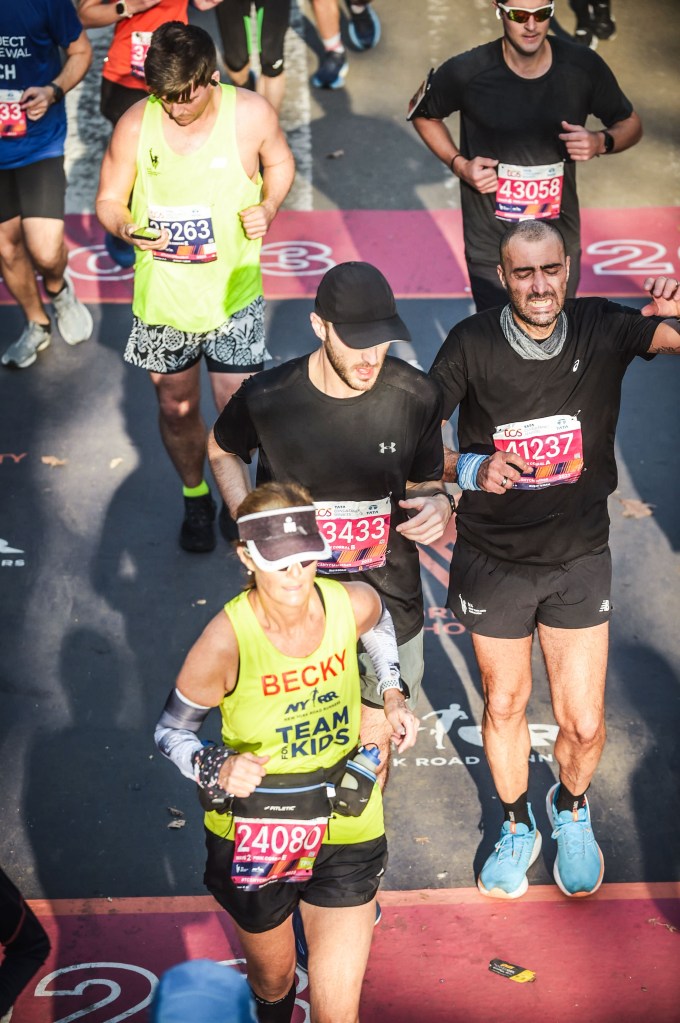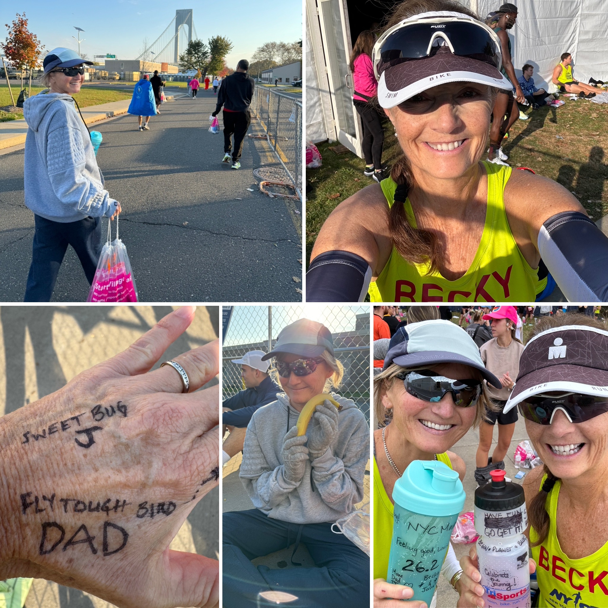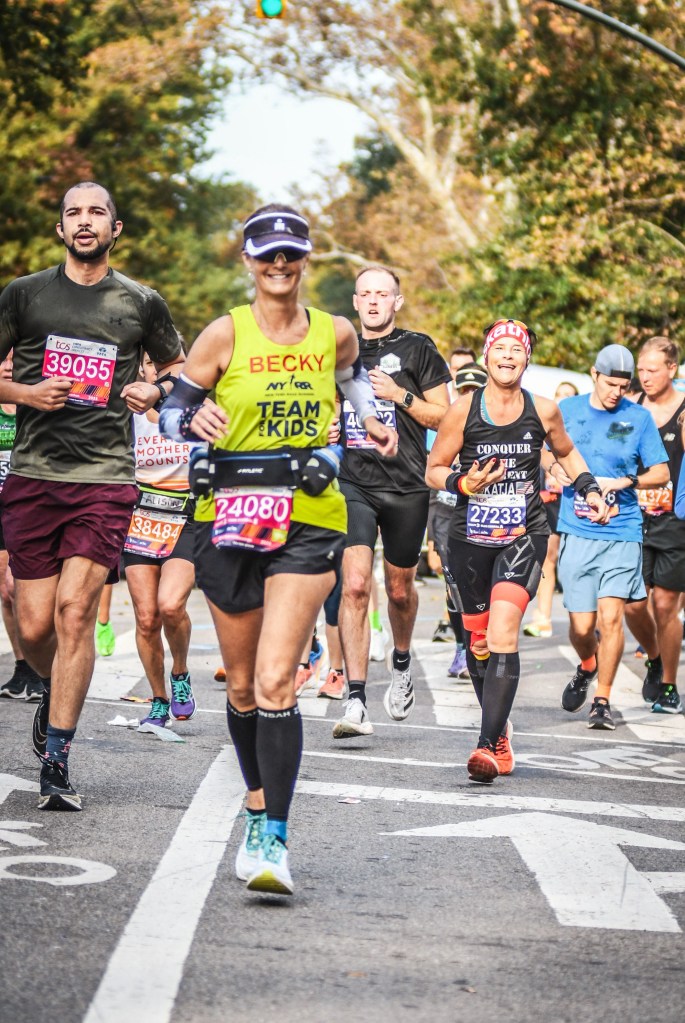 Whenever I hit a bump in the road that makes me veer from my training plan, I freak out a little about whether I’ll be able to get the starting line — or, really, the finish line. Fortunately, Becky is always there with some words of wisdom to calm me down. After I fire off a text lamenting my latest issue along with a bunch of stress emojis, she sends back gems like, “Success simply means getting to the start, having fun, and crossing the finish line, no matter what pace.” And “…throw out all expectations of what you think you ‘should’ be doing and just enjoy the fact that you GET to run the NY-freaking-marathon …” When I was laid up with the virus my kid brought home, she walked me through a visualization of the course, which I’ve now incorporated into my routine. It came with this sage advice: “Our minds are what’s going to make this happen. Our bodies are just along for the glorious ride.”