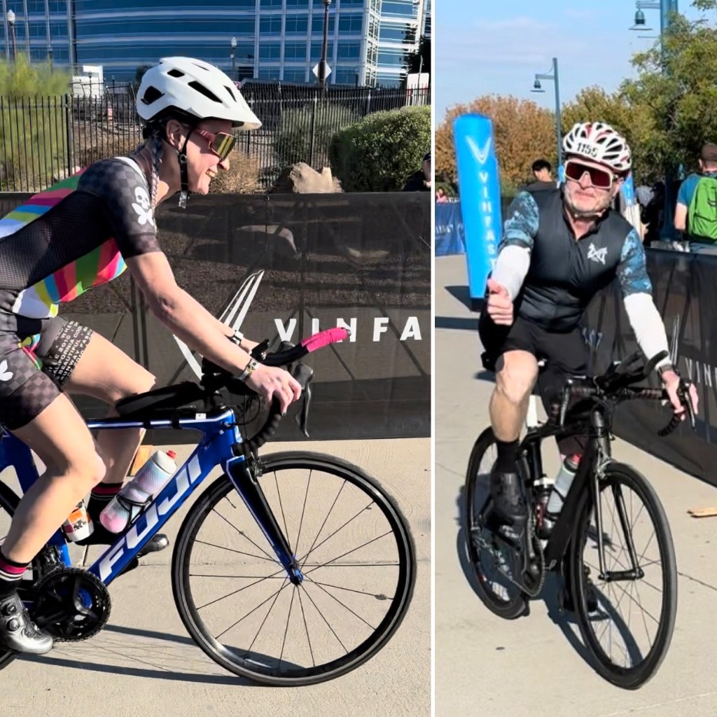 Their back story is kind of fun…over a year ago my brother Scott texted me that he was thinking about doing something big for his 60th birthday, hinting, “IM?” I casually threw out the idea of doing Ironman Arizona because I had done that race in 2016 and enjoyed the experience immensely (you can read my race report here if you want to know just how much). I don’t know what conversations took place between Scott and his wife, Jess, but when Christmas rolled around last year, Scott received a phenomenal gift to celebrate his sixth decade: an entry into Ironman Arizona. It blew him away and also gave him plenty of time to wrap his head around this epic 140.6-mile race, and fully embrace the journey ahead.