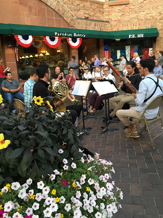 Afterward we ventured to our daughter’s favorite place for sweets, Paradise Bakery. This tiny place happens to be the highest grossing establishment per square foot in Aspen (notice the line out the door and my peeps at the end). And who doesn’t love the sound of Aspen Music Festival students playing for passersby? It’s such a lovely summer tradition here.