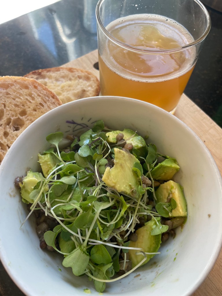 Lentils: This is one of my all-time favorite meals, especially because my husband makes this killer dish with sauteed bell peppers, onions, celery and mushrooms, topped with avocado and micro greens. Served with a couple of slices of fresh sourdough bread, and a glass of kombucha, your tummy will be doing a happy dance.