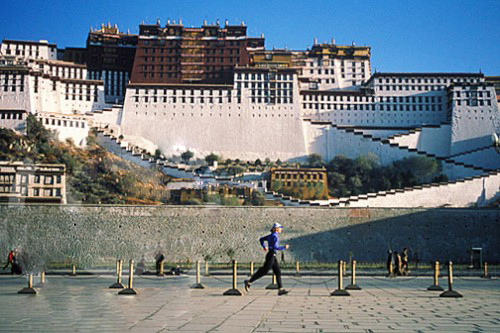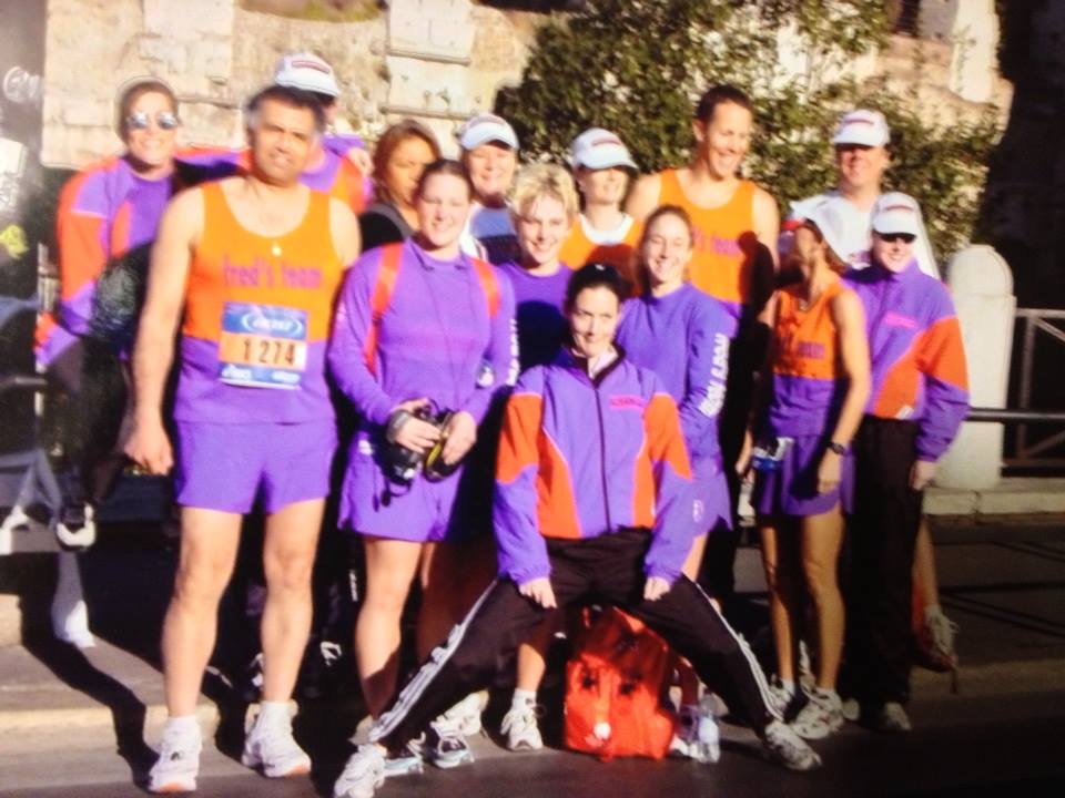 Rome Marathon Fred’s Team (left). Paris Marathon (right)–sporting red, white and blue after 9/11.