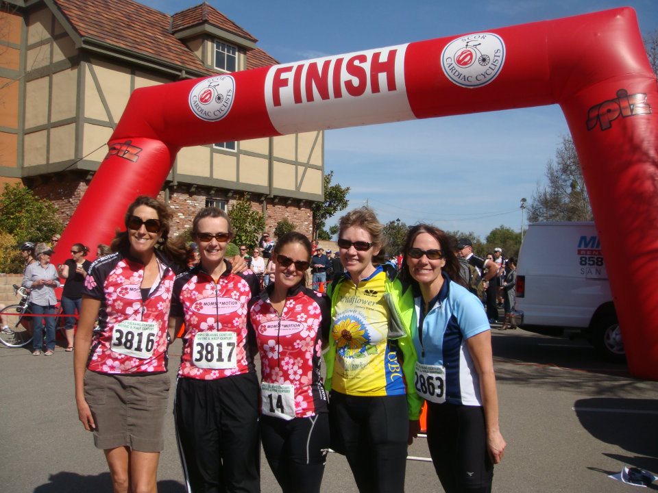 The Moms in Motion Cycling Team with some good lookin’ “helmet head”