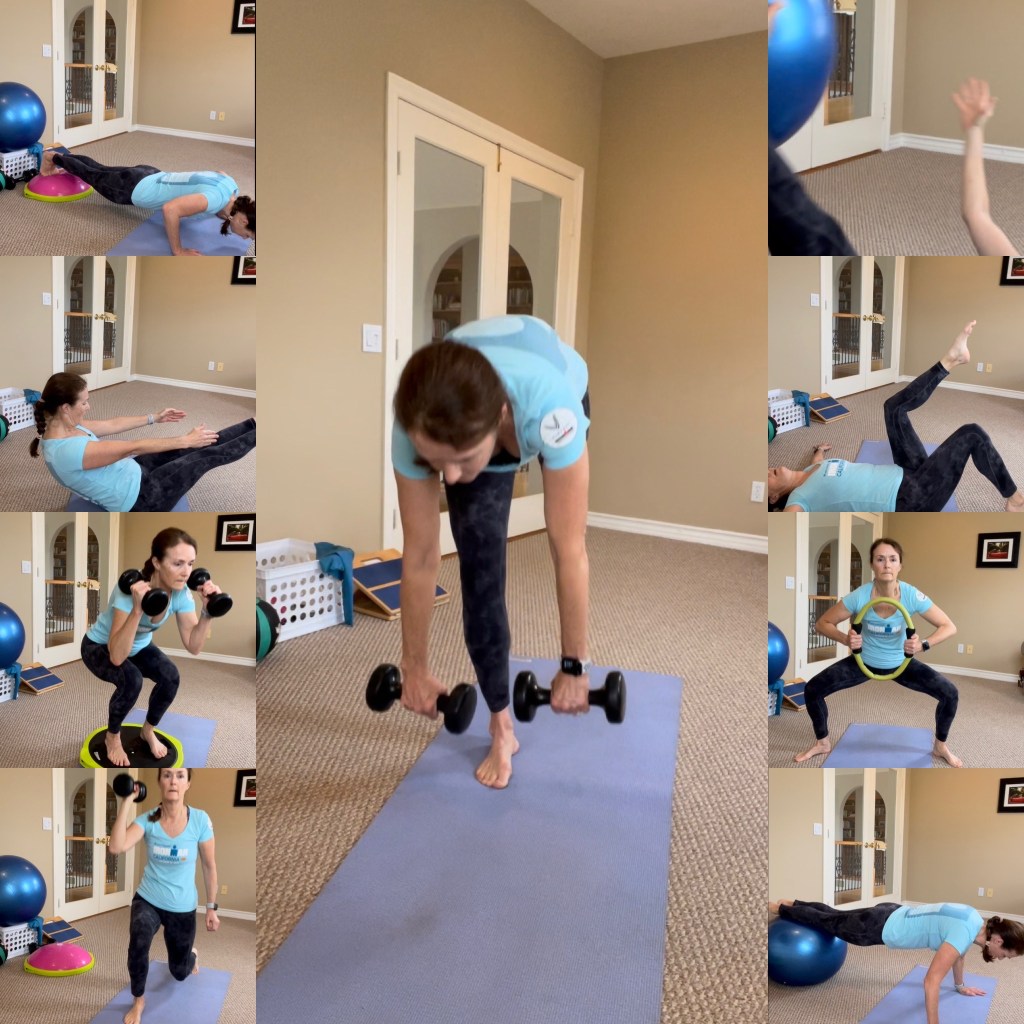 • If you are trying to improve your strength and do it without straining or injuring yourself, I highly recommend getting a selfie tripod for your phone so you can film yourself–especially if you work out where you don’t have a mirror. It may sound narcissistic, but filming yourself makes it easier to see your form as well as your imbalances and weaknesses. You may feel like your hip is at a certain angle, your leg is at an optimal height or knees are aligned, but until you actually see yourself doing each exercise, it’s hard to know, especially when you are trying new moves. It’s like having an impartial review at your fingertips, which is invaluable.